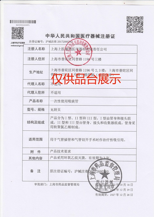 產(chǎn)品名稱 : 上海康鴿一次性使用吸痰管III型(吸痰管配80ml痰(肺)液收集器)F6