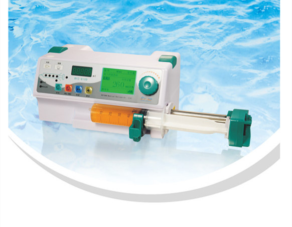 8、聲光報警功能:藥物將盡,注射完畢、設定劑量注射完畢、注射阻塞、注射器脫落、注射器未正確安裝,速率設置錯誤提示交流電源已拔出報警、電池電量不足請接外電源